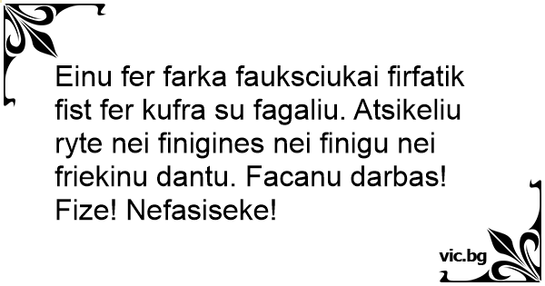 Einu fer farka fauksciukai firfatik fist fer kufra su fagaliu. Atsikeliu ryte nei finigines nei finigu nei friekinu dantu. Facanu darbas! Fize! Nefasiseke!