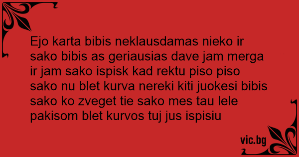 Ejo karta bibis neklausdamas nieko ir sako bibis as geriausias dave jam merga ir jam sako ispisk kad rektu piso piso sako nu blet kurva nereki kiti juokesi bibis sako ko zveget tie sako mes tau lele pakisom blet kurvos tuj jus ispisiu