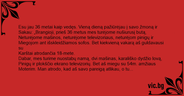Esu jau 36 metai kaip vedęs. Vieną dieną pažiūrėjau į savo žmoną ir