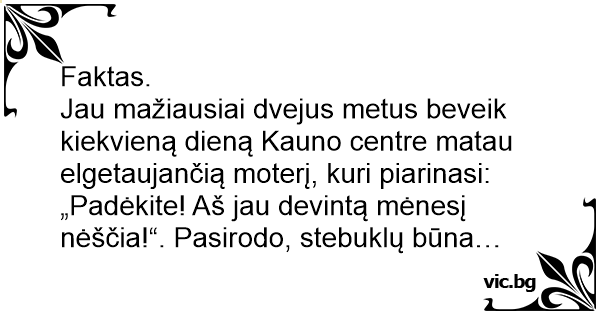 Jau mažiausiai dvejus metus beveik kiekvieną dieną Kauno centre matau elgetaujančią moterį, kuri piarinasi: „Padėkite! Aš jau devintą mėnesį nėščia!“. Pasirodo, stebuklų būna…