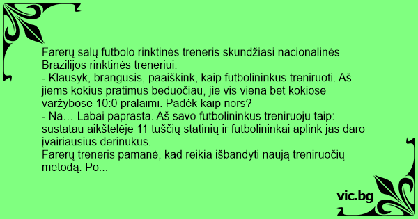 Farerų treneris pamanė, kad reikia išbandyti naują treniruočių metodą. Po savaitės skambina jam brazilas ir klausia: