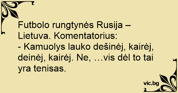 - Kamuolys lauko dešinėj, kairėj, deinėj, kairėj. Ne, …vis dėl to tai yra tenisas.