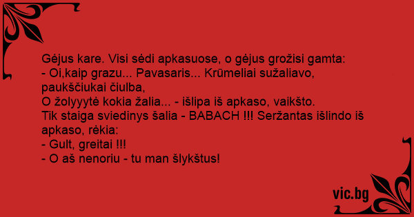 Tik staiga sviedinys šalia - BABACH !!! Seržantas išlindo iš apkaso, rėkia: