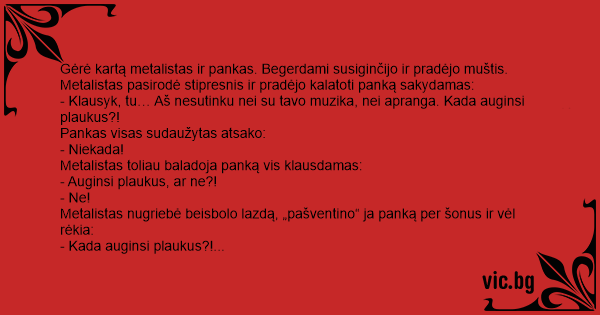 Gėrė kartą metalistas ir pankas. Begerdami susiginčijo ir pradėjo muštis.