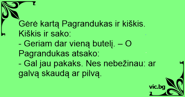 - Geriam dar vieną butelį. – O Pagrandukas atsako: