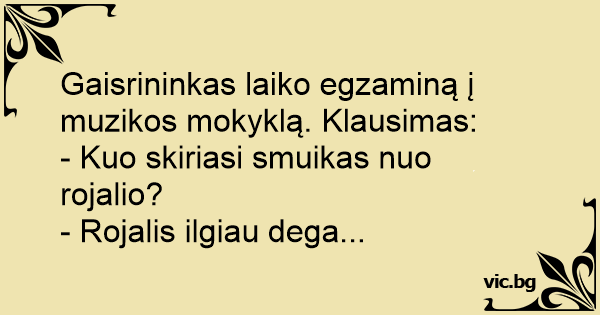 Gaisrininkas laiko egzaminą į muzikos mokyklą. Klausimas: