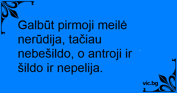 Galbūt pirmoji meilė nerūdija, tačiau nebešildo, o antroji ir šildo ir nepelija.
