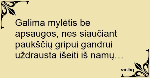 Galima mylėtis be apsaugos, nes siaučiant paukščių gripui gandrui uždrausta išeiti iš namų…