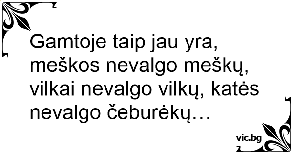Gamtoje taip jau yra, meškos nevalgo meškų, vilkai nevalgo vilkų, katės nevalgo čeburėkų…