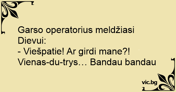 - Viešpatie! Ar girdi mane?! Vienas-du-trys… Bandau bandau