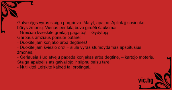 - Greičiau kvieskite greitąją pagalbą! – Gydytoją!