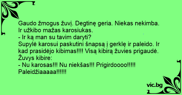 Gaudo žmogus žuvį. Degtinę geria. Niekas nekimba. Ir užkibo mažas karosiukas.
