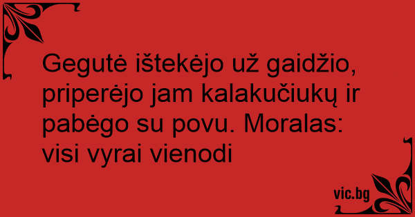 Gegutė ištekėjo už gaidžio, priperėjo jam kalakučiukų ir pabėgo su povu. Moralas: visi vyrai vienodi