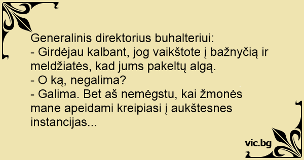 - Girdėjau kalbant, jog vaikštote į bažnyčią ir meldžiatės, kad jums pakeltų algą.