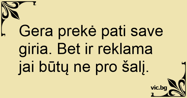 Gera prekė pati save giria. Bet ir reklama jai būtų ne pro šalį.