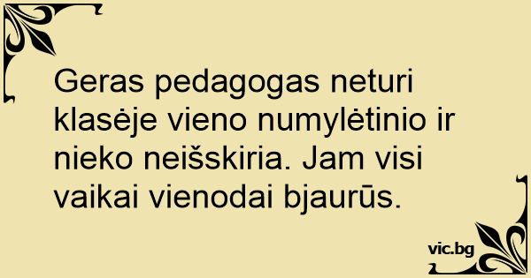 Geras pedagogas neturi klasėje vieno numylėtinio ir nieko neišskiria. Jam visi vaikai vienodai bjaurūs.