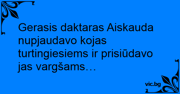 Gerasis daktaras Aiskauda nupjaudavo kojas turtingiesiems ir prisiūdavo jas vargšams…