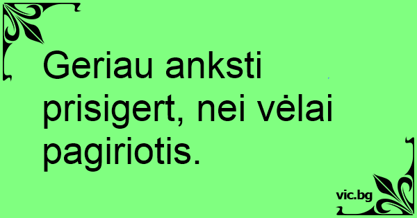Geriau anksti prisigert, nei vėlai pagiriotis.