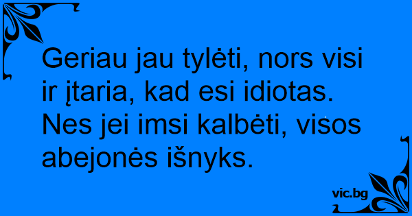 Geriau jau tylėti, nors visi ir įtaria, kad esi idiotas. Nes jei imsi kalbėti, visos abejonės išnyks.