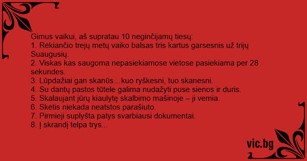 Gimus vaikui, aš supratau 10 neginčijamų tiesų: