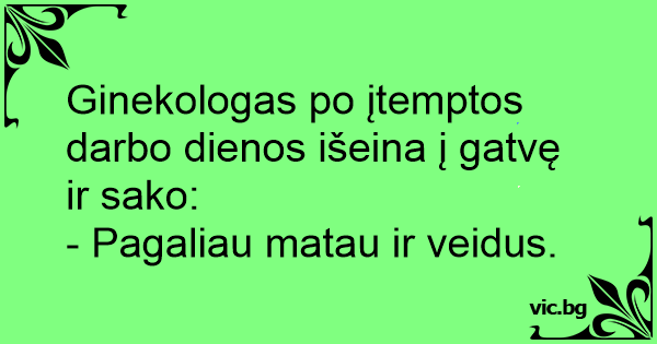 Ginekologas po įtemptos darbo dienos išeina į gatvę ir sako: