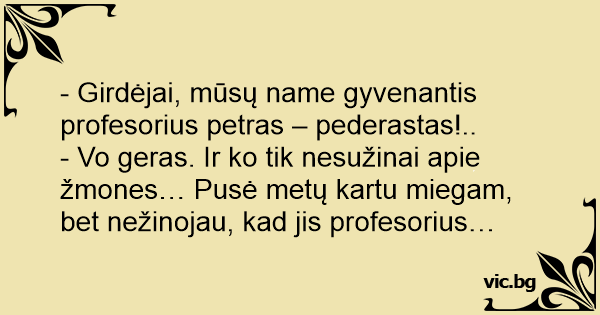 - Girdėjai, mūsų name gyvenantis profesorius petras – pederastas!..