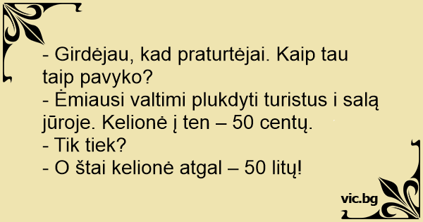 - Girdėjau, kad praturtėjai. Kaip tau taip pavyko?