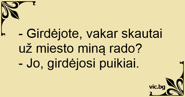 - Girdėjote, vakar skautai už miesto miną rado?