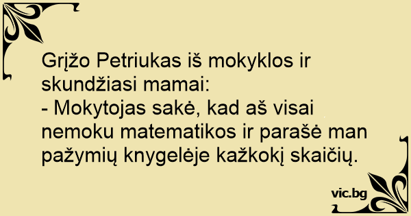 - Mokytojas sakė, kad aš visai nemoku matematikos ir parašė man pažymių knygelėje kažkokį skaičių.