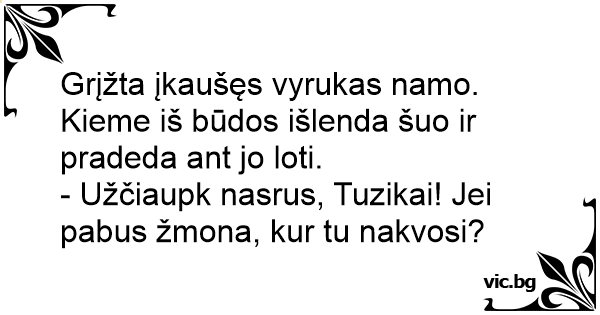 - Užčiaupk nasrus, Tuzikai! Jei pabus žmona, kur tu nakvosi?