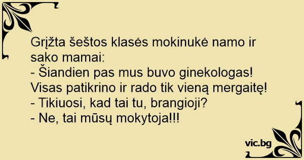 - Šiandien pas mus buvo ginekologas! Visas patikrino ir rado tik vieną mergaitę!