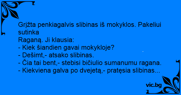- Kiekviena galva po dvejetą,- pratęsia slibinas...