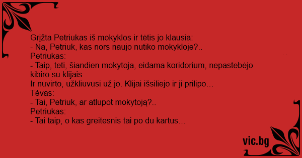 - Na, Petriuk, kas nors naujo nutiko mokykloje?..