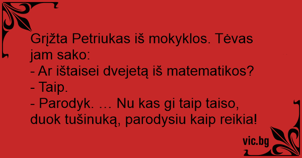 Grįžta Petriukas iš mokyklos. Tėvas jam sako: