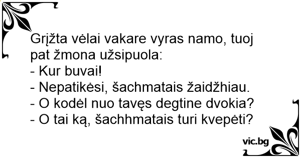 - Nepatikėsi, šachmatais žaidžhiau.