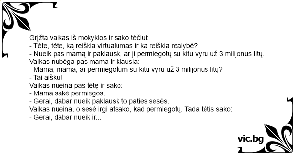 - Tėte, tėte, ką reiškia virtualumas ir ką reiškia realybė?