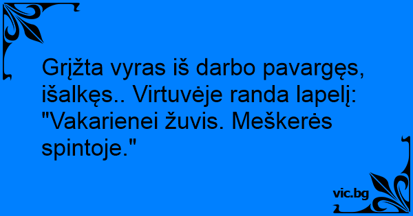 Grįžta vyras iš darbo pavargęs, išalkęs.. Virtuvėje randa lapelį: