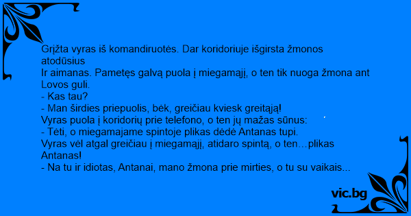 - Na tu ir idiotas, Antanai, mano žmona prie mirties, o tu su vaikais