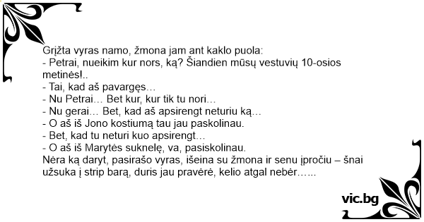 Grįžta vyras namo, žmona...