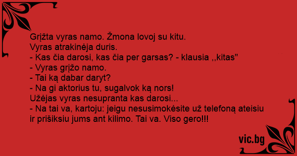 Grįžta vyras namo. Žmona lovoj su kitu.