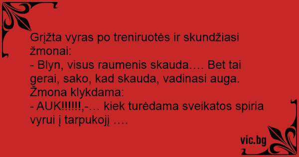 - Blyn, visus raumenis skauda…. Bet tai gerai, sako, kad skauda, vadinasi auga.