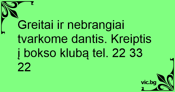 Greitai ir nebrangiai tvarkome dantis. Kreiptis į bokso klubą tel. 22 33 22