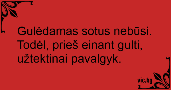 Gulėdamas sotus nebūsi. Todėl, prieš einant gulti, užtektinai pavalgyk.