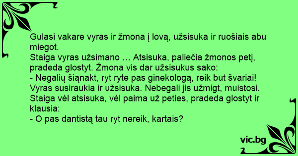 Gulasi vakare vyras ir žmona į lovą, užsisuka ir ruošiais abu miegot.