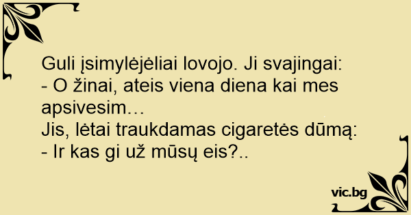 Guli įsimylėjėliai lovojo. Ji svajingai: