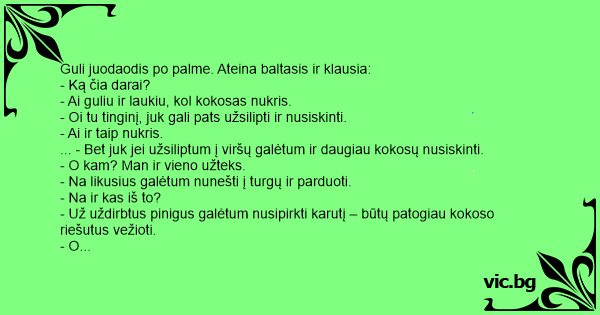 ... - Bet juk jei užsiliptum į viršų galėtum ir daugiau kokosų nusiskinti.