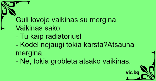 Guli lovoje vaikinas su mergina. Vaikinas sako: