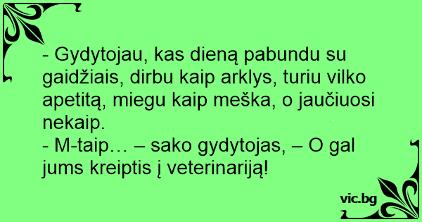 - M-taip… – sako gydytojas, – O gal jums kreiptis į veterinariją!