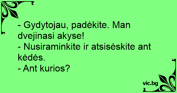 - Gydytojau, padėkite. Man dvejinasi akyse!