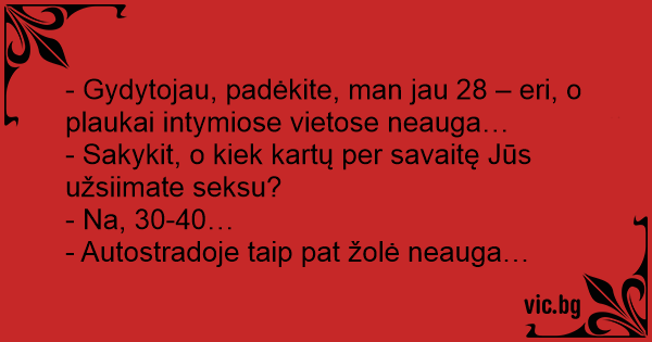 - Gydytojau, padėkite, man jau 28 – eri, o plaukai intymiose vietose neauga…